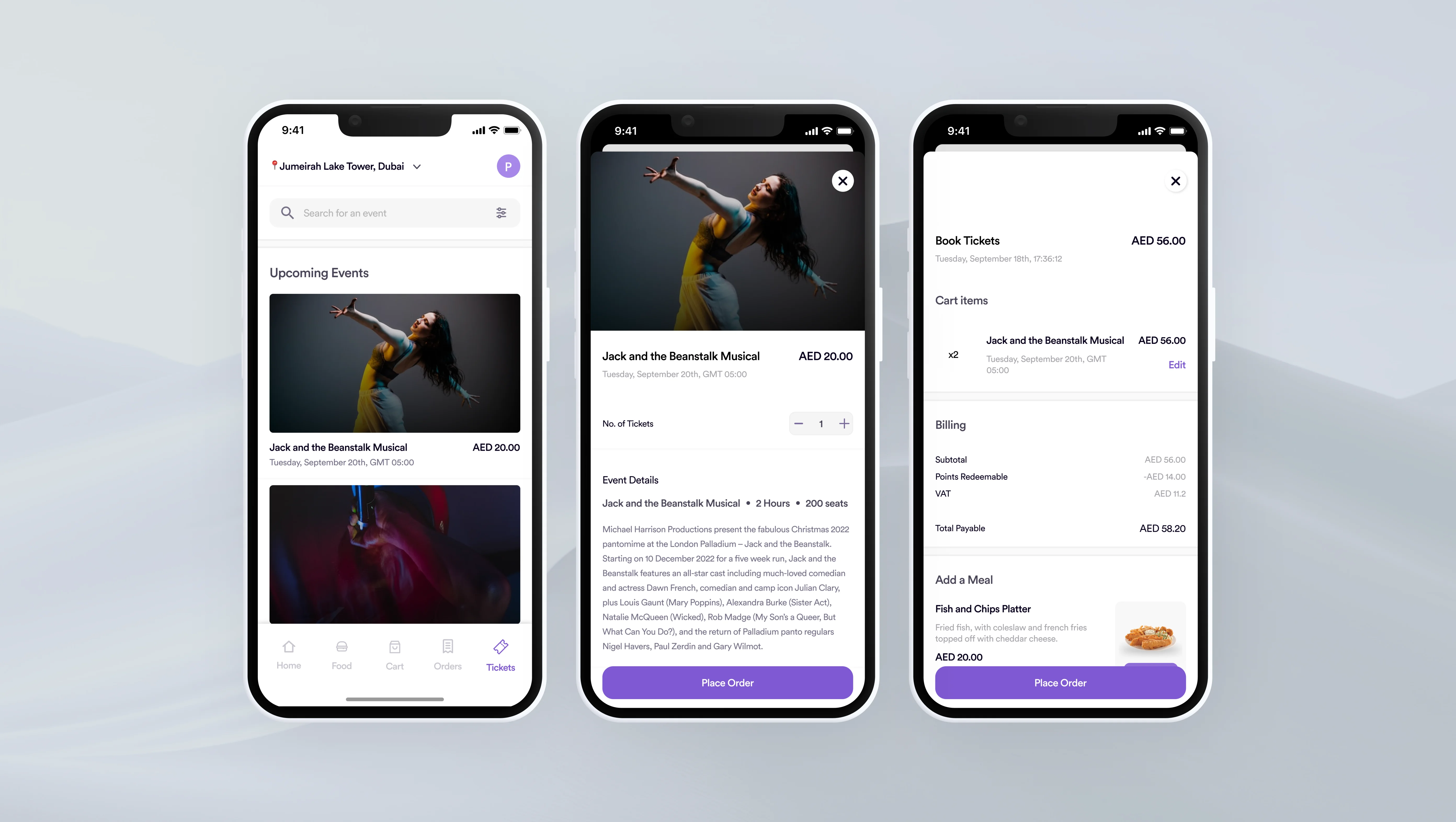 Conceptualising an app for an outdoor cafe chain with live events in Dubai.